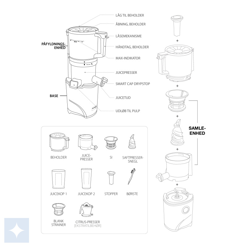 Fyldetragt: Ø 88 mm (til hele frugter)