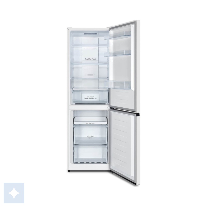 Med en samlet kapacitet på 304 liter, hvoraf 207 liter er til friske varer og 97 liter til frys, tilbyder det rigelig plads til hele husstandens behov. Begge sektioner anvender Total No Frost-teknologi, som effektivt forhindrer isdannelse, så du slipper for både manuel afrimning og isknas.