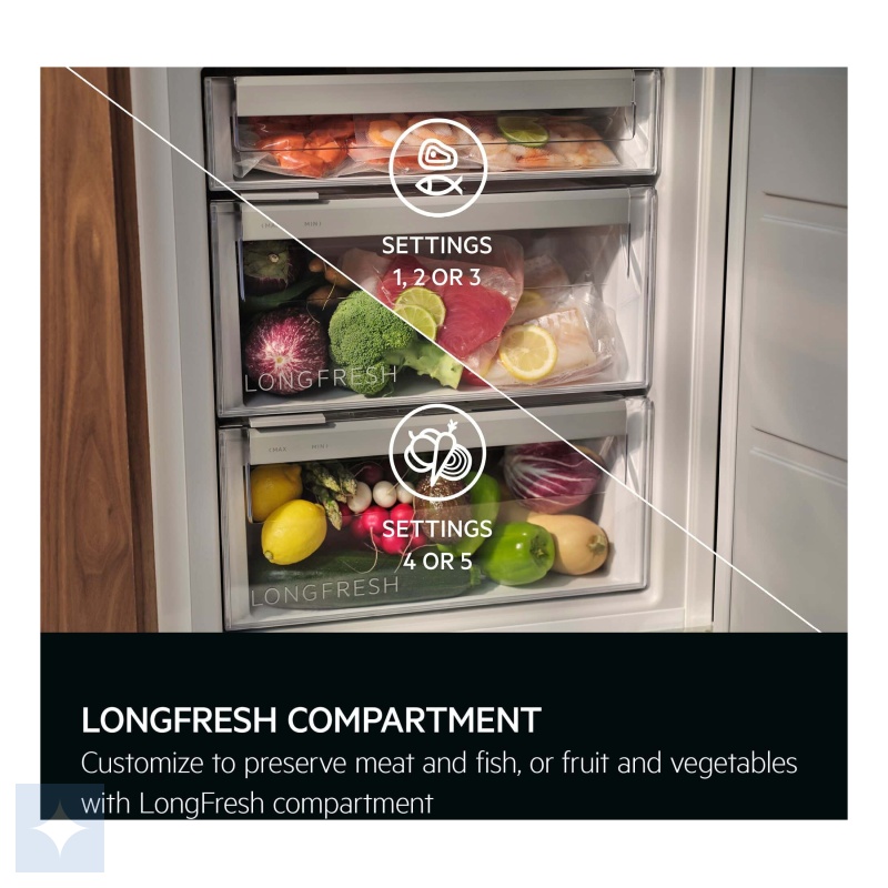 AEG 9000 LongFresh køleskab med 0°C zone sikrer optimal opbevaring af kød, fisk og friske råvarer. Med MultiFlow-teknologi, soft-close dør, og energieffektive LED-lys er dette køleskab den perfekte løsning til dem, der ønsker længere holdbarhed og maksimal friskhed.