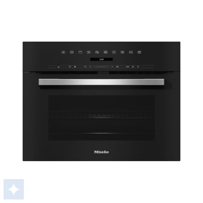 Miele H 7145 BM kompaktovn med integreret mikrobølgeovn. Ovnen har et ovnrum på 43 liter, i elegant, sort design med automatikprogrammer og kombi-funktioner.