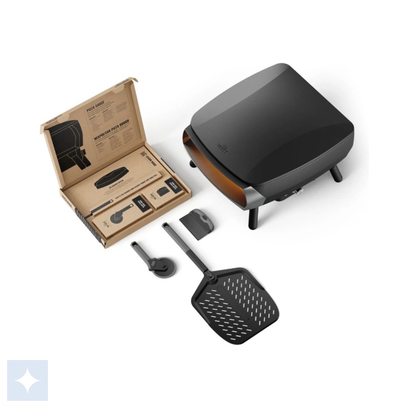 Witt Piccolo Rotante 16″ EU Toolbox 3 i sort giver dig mulighed for at lave autentisk pizza hvor som helst. Den kompakte, bærbare ovn kombinerer en roterende pizzasten med en C-formet gasbrænder for jævn varmefordeling og perfekte pizzaer på under 90 sekunder.