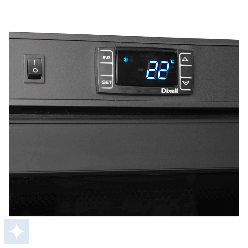 UR-BG er en serie af sorte displaykøleskabe med glasdør. Serien tilbyder god produktsynlighed gennem den vendbare glasdør. Køleren har justerbare hylder, der gør det nemt at indrette kabinettet til dine behov. Kølesystemet er med ventilator, hvilket er med til at sikre en stabil temperatur i hele køleskabet.