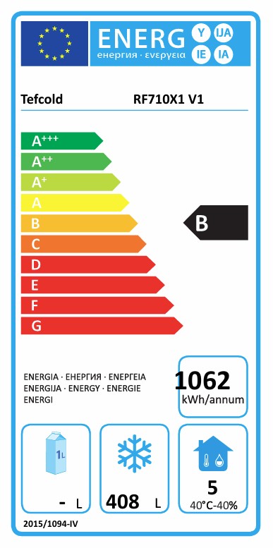 - Tefcold RF710X1, rustfri fryseskab gn2/1