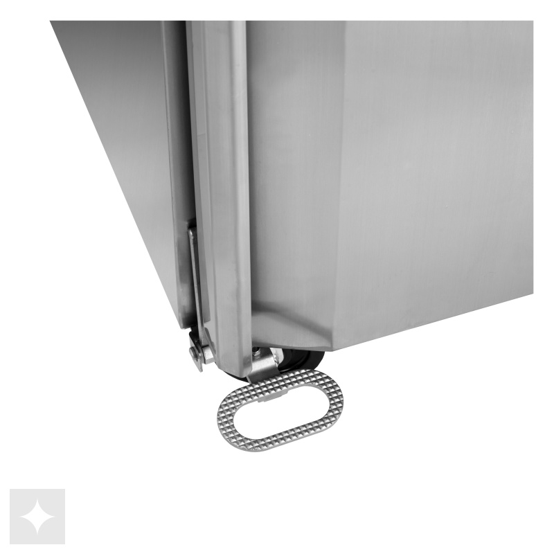 RF er en serie af opretstående rustfrie fryseskabe med 1 eller 2 solide døre, beregnet til professionelle køkkener. Køleskabene har derfor justerbare hylder med GN2/1 mål. De er fremstillet i høj-kvalitets SS304 rustfrit stål og har kraftige hjul for god mobilitet. Ventileret køling sørger for, at fødevarerne opbevares ved den optimale temperatur. Temperaturen kan indstilles på en digital termostat – komplet med Bluetooth for nem overvågning via app.