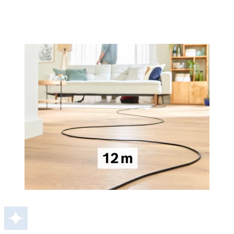 • Ekstra lang ledning og 12 m 12 m. arbejdsradius: ekstralangt kabel til en større rækkevidde og færre skift af stikkontakter.for at mindske antallet af skift af stikkontakt