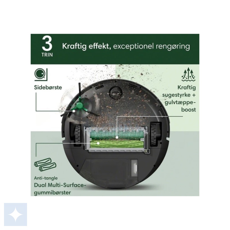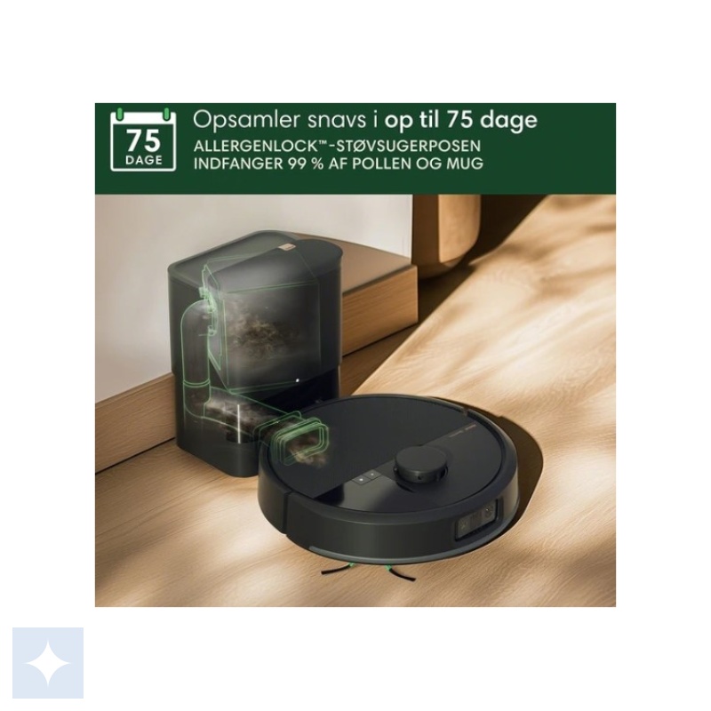 Med smarte sensorer og app-styring tilpasser den sig automatisk dit hjem, undgår forhindringer og sikrer optimal dækning i alle rum. Perfekt til både travle familier, kæledyrsejere og allergikere.