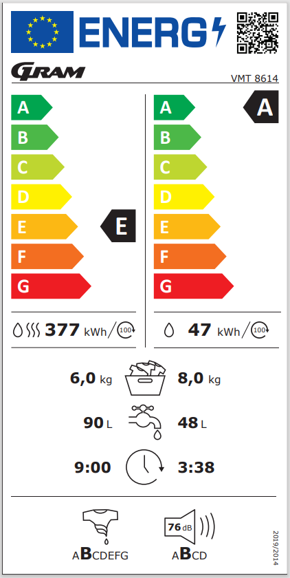 - Gram VMT 8614 vaske-/tørremaskine